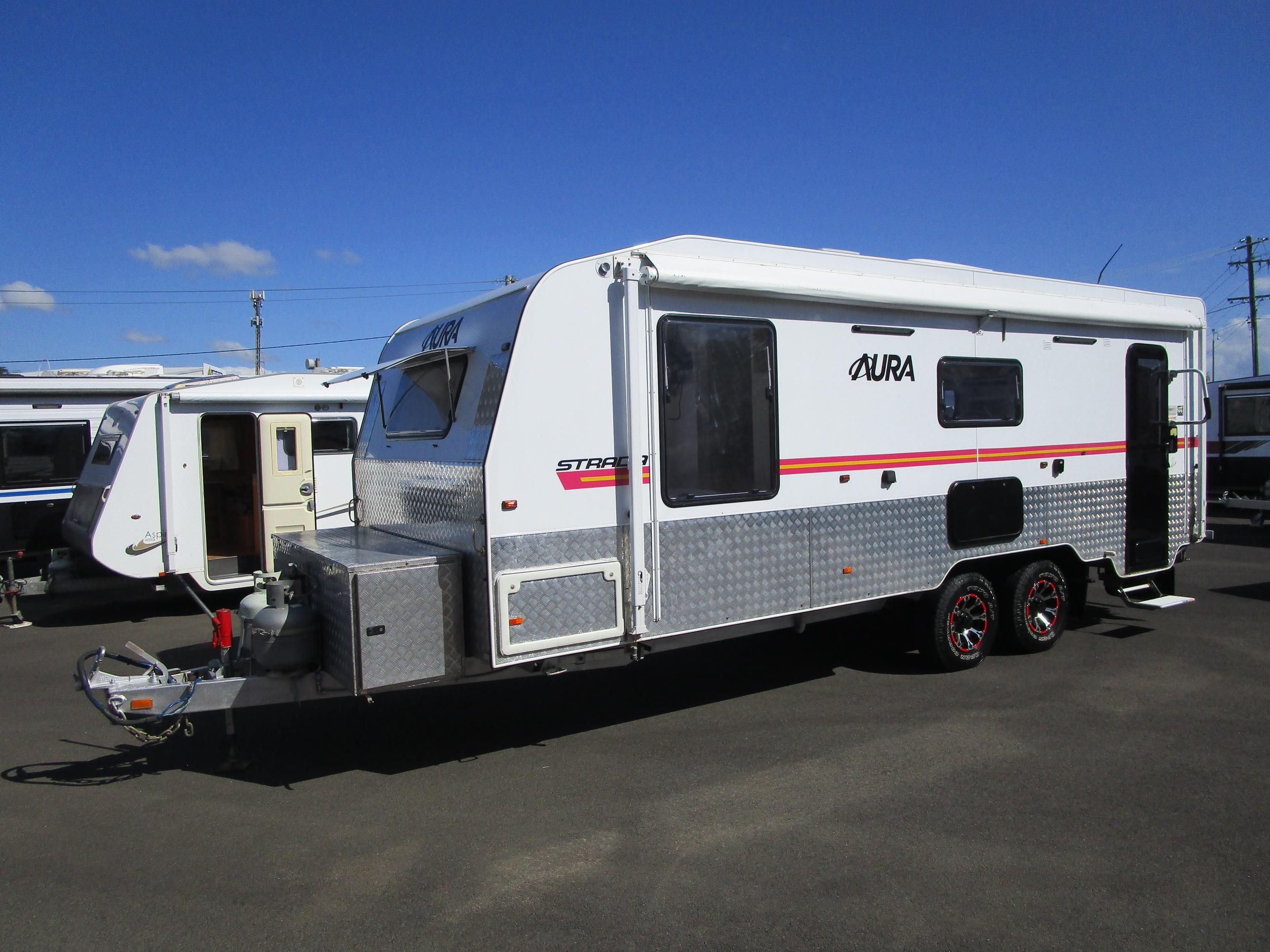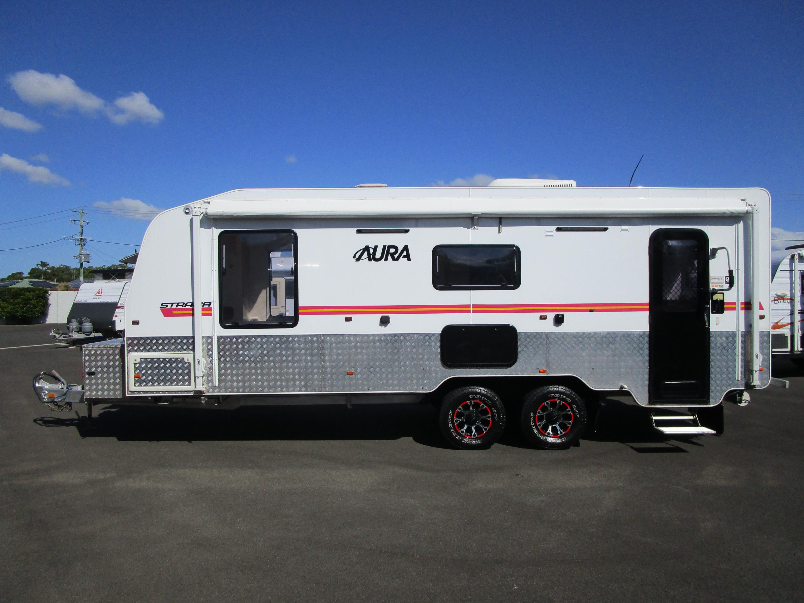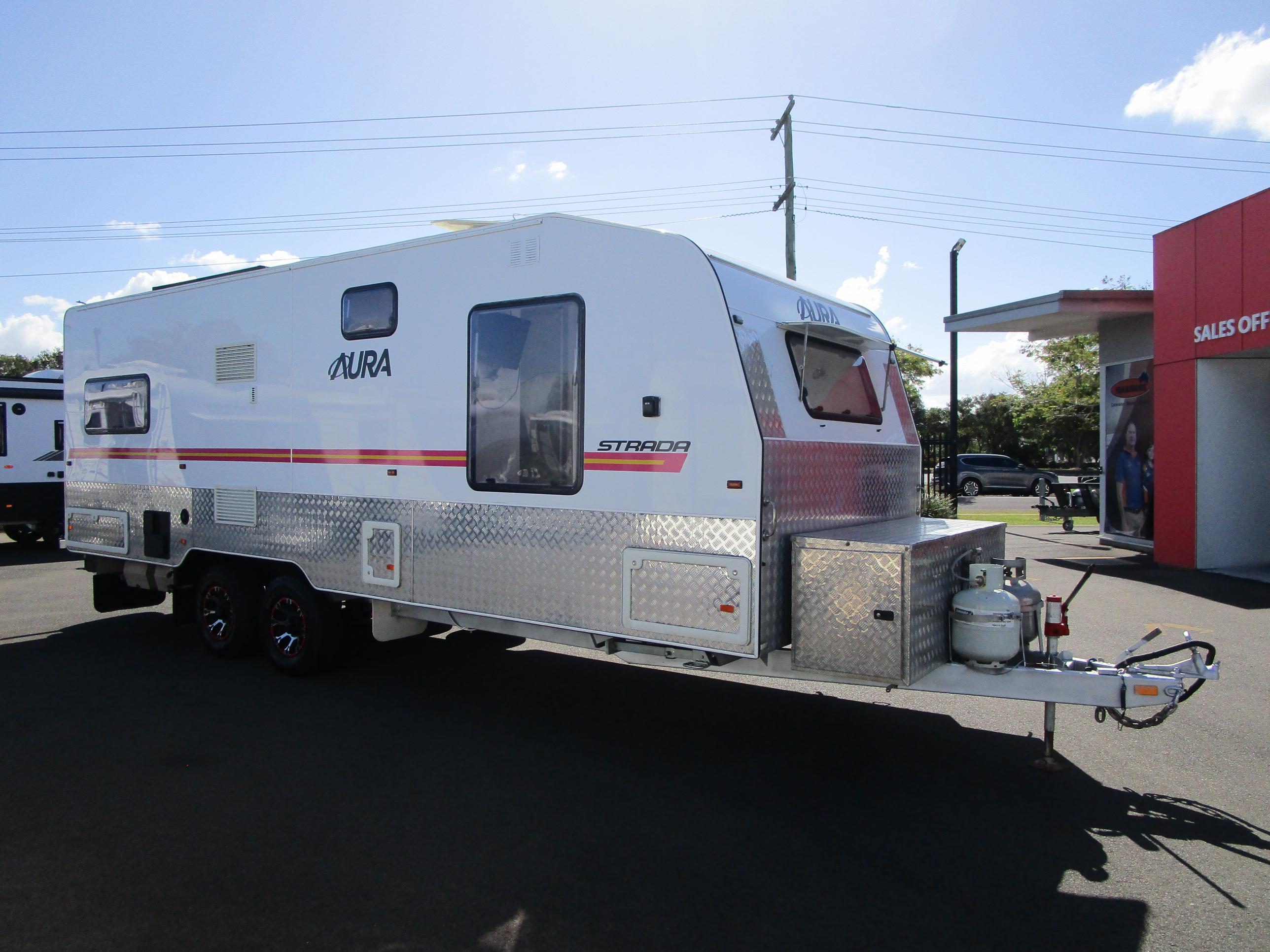Storage, Storage, Storage!! This Aura Strada's unique layout makes it perfect for all caravanning possibilities. Long term travel, Semi Off Road adventures, living in, the choice is yours. Large centre Ensuite, huge kitchen, and, yes, you guessed, it loads of storage both inside and out. Don't miss out on this value for money van!