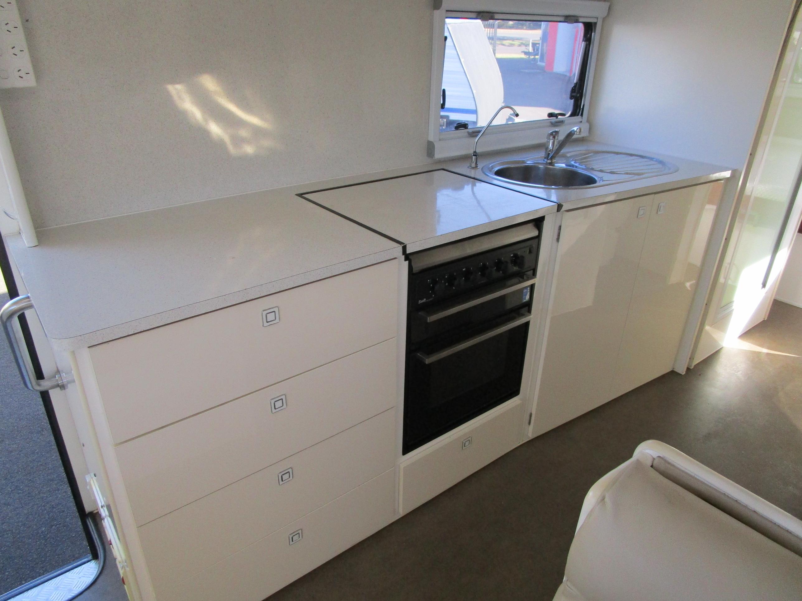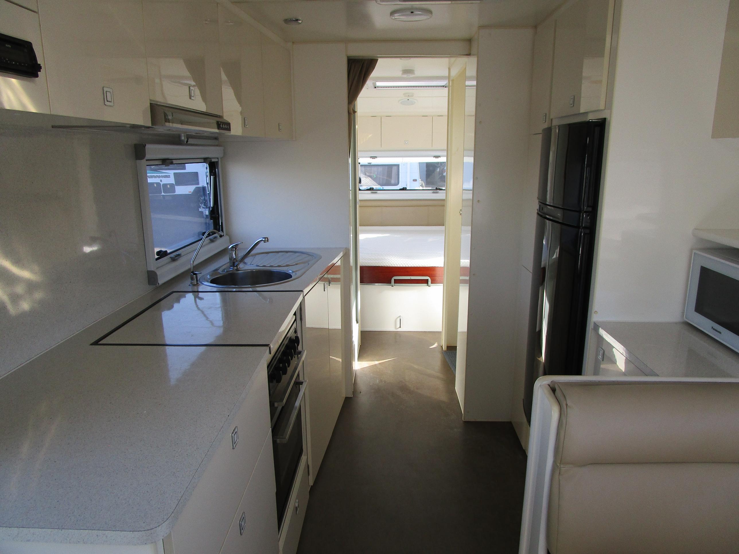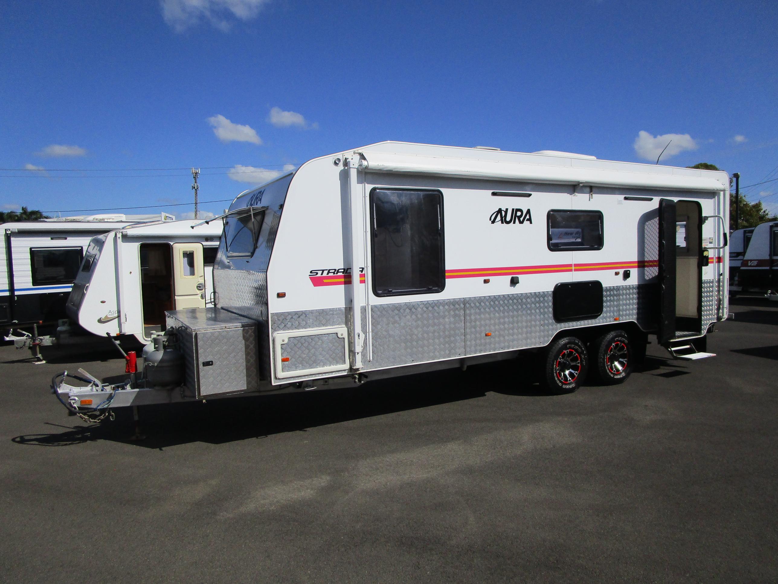 Storage, Storage, Storage!! This Aura Strada's unique layout makes it perfect for all caravanning possibilities. Long term travel, Semi Off Road adventures, living in, the choice is yours. Large centre Ensuite, huge kitchen, and, yes, you guessed, it loads of storage both inside and out. Don't miss out on this value for money van!